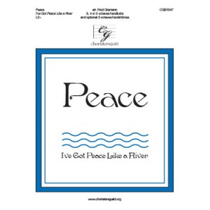 In Galatians 5:22 we learn that love, joy and peace are among the fruits of the Spirit, fruits which the Negro Spiritual Iâ?Tve Got Peace Like a River compares to water. Oftentimes the human quest for love, peace and joy are found at the end of challenging journeys. This was certainly the case for the dedicatee of this piece, Barbara Rogers, who traveled the very painful pathway of cancer which ended her earthly life. This arrangement deals with just such a road as this, where peace, love and joy can sometimes seem just out of reach. This is underlined by the treatment of the melody in a minor key midway through the piece. After a somewhat victorious final verse, the music pauses, then quietly concludes with the melody in the treble reflected upside down below in the tenor. It is as if to say that those who finally meet the Creator face to face, like Barbara, at last know perfect peace, love and joy, while we on earth continue to seek those precious, sometimes elusive fruits.